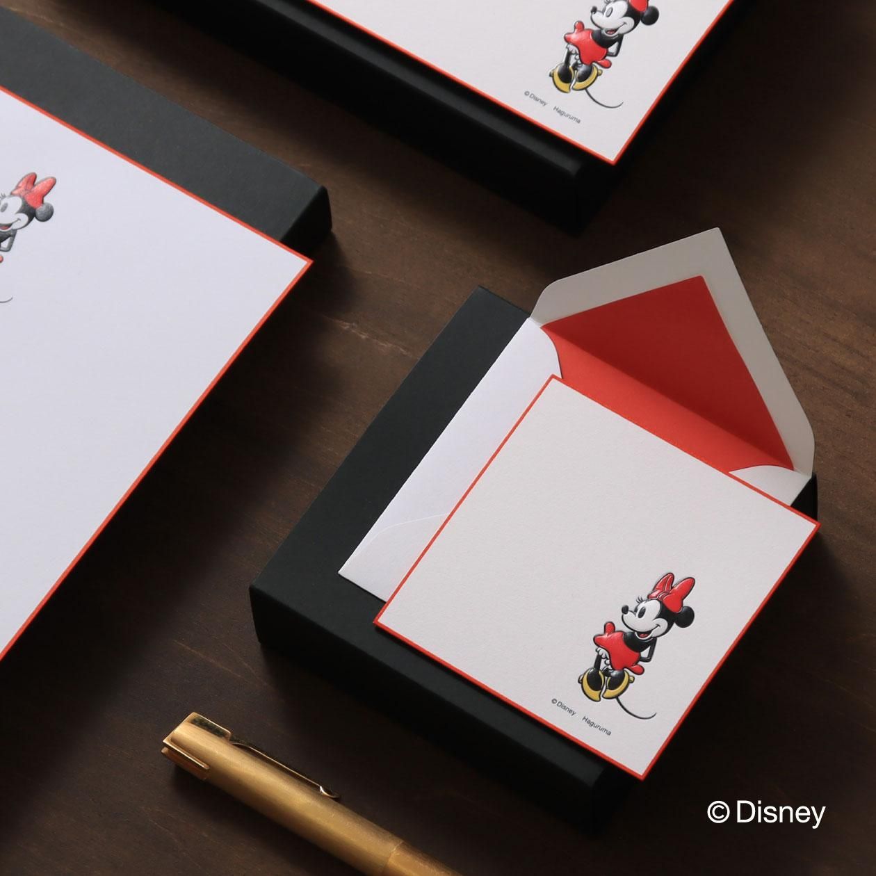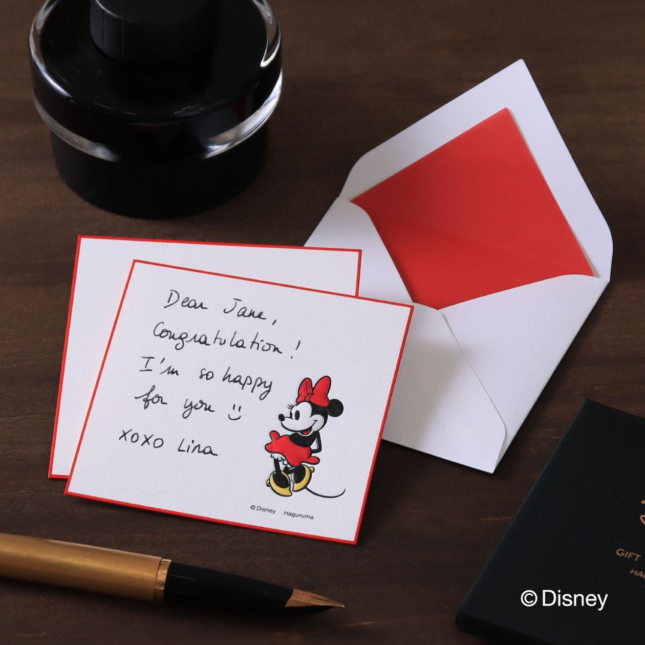 大人のための上質なステーショナリーカードセット。時を超えて愛されるディズニーキャラクターが、さりげない遊び心を添えています。正方形のミニカードはひと言メッセージにぴったりのサイズ。手書きのメッセージを温かく届けるこのカードは、お礼やお祝いの言葉を添える場面を上品に彩ります。