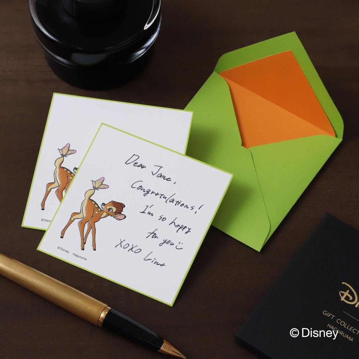 大人のための上質なステーショナリーカードセット。時を超えて愛されるディズニーキャラクターが、さりげない遊び心を添えています。正方形のミニカードはひと言メッセージにぴったりのサイズ。手書きのメッセージを温かく届けるこのカードは、お礼やお祝いの言葉を添える場面を上品に彩ります。