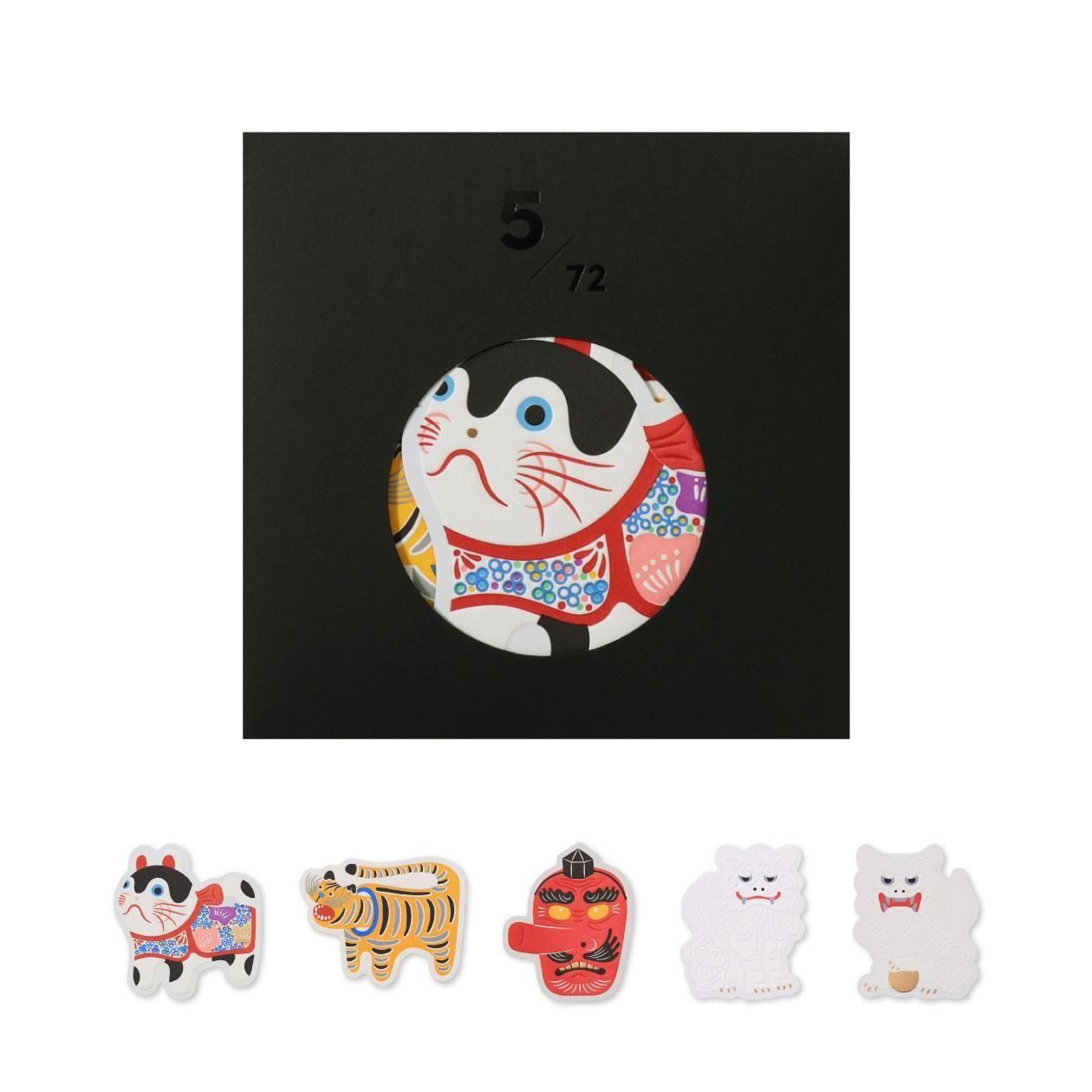 伝統的な活版印刷で一色ずつ刷り重ねた72の幸運・良縁・お守りのモチーフ。