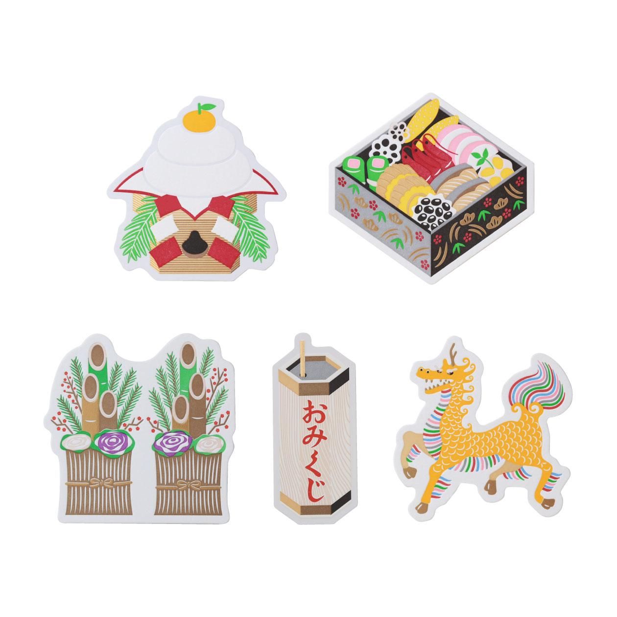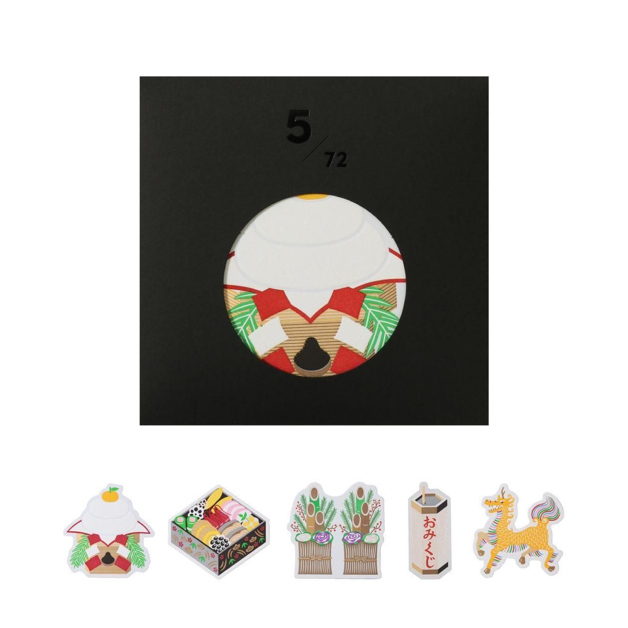 [カード] 画像参照 (モチーフ:鏡餅/おせち/門松/おみくじ/麒麟(きりん) サイズ:約100×100mm以内)