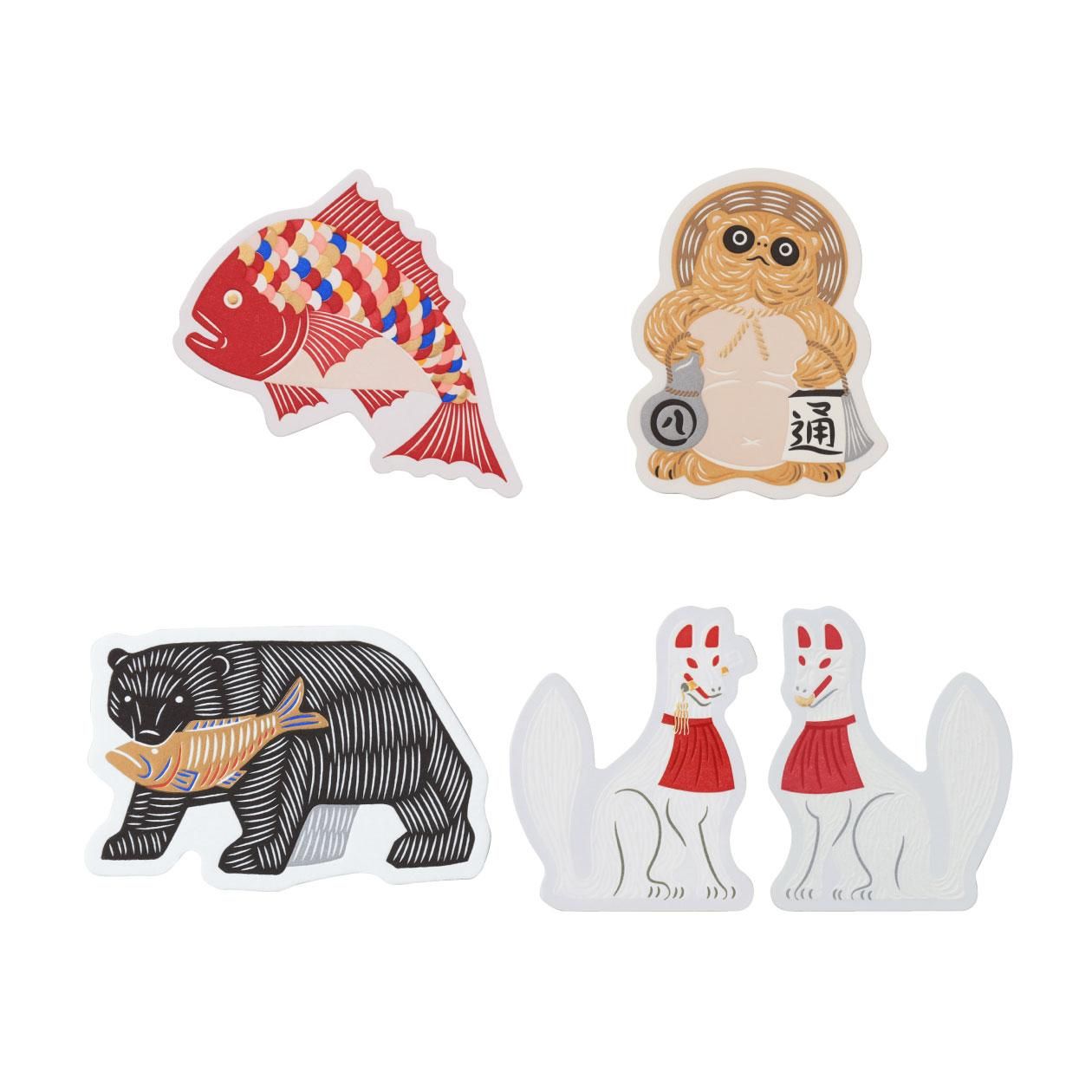 [カード] 画像参照 (モチーフ:鯛/たぬき/木彫りのくま/狐(鍵)/狐(玉) サイズ:約100×100mm以内)