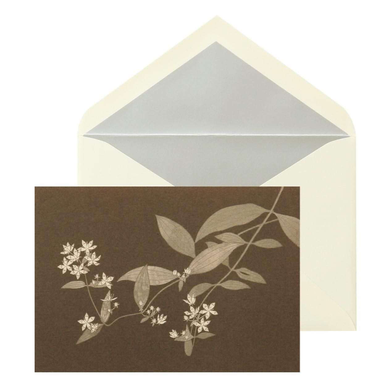 イラストレーター片山治之さんの描く本来スミ一色の原画に、日本の伝統色を合わせたカードと封筒のセットです。