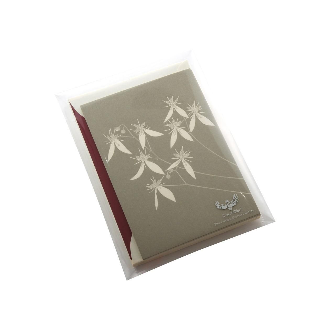 イラストレーター片山治之さんの描く本来スミ一色の原画に、日本の伝統色を合わせたカードと封筒のセットです。