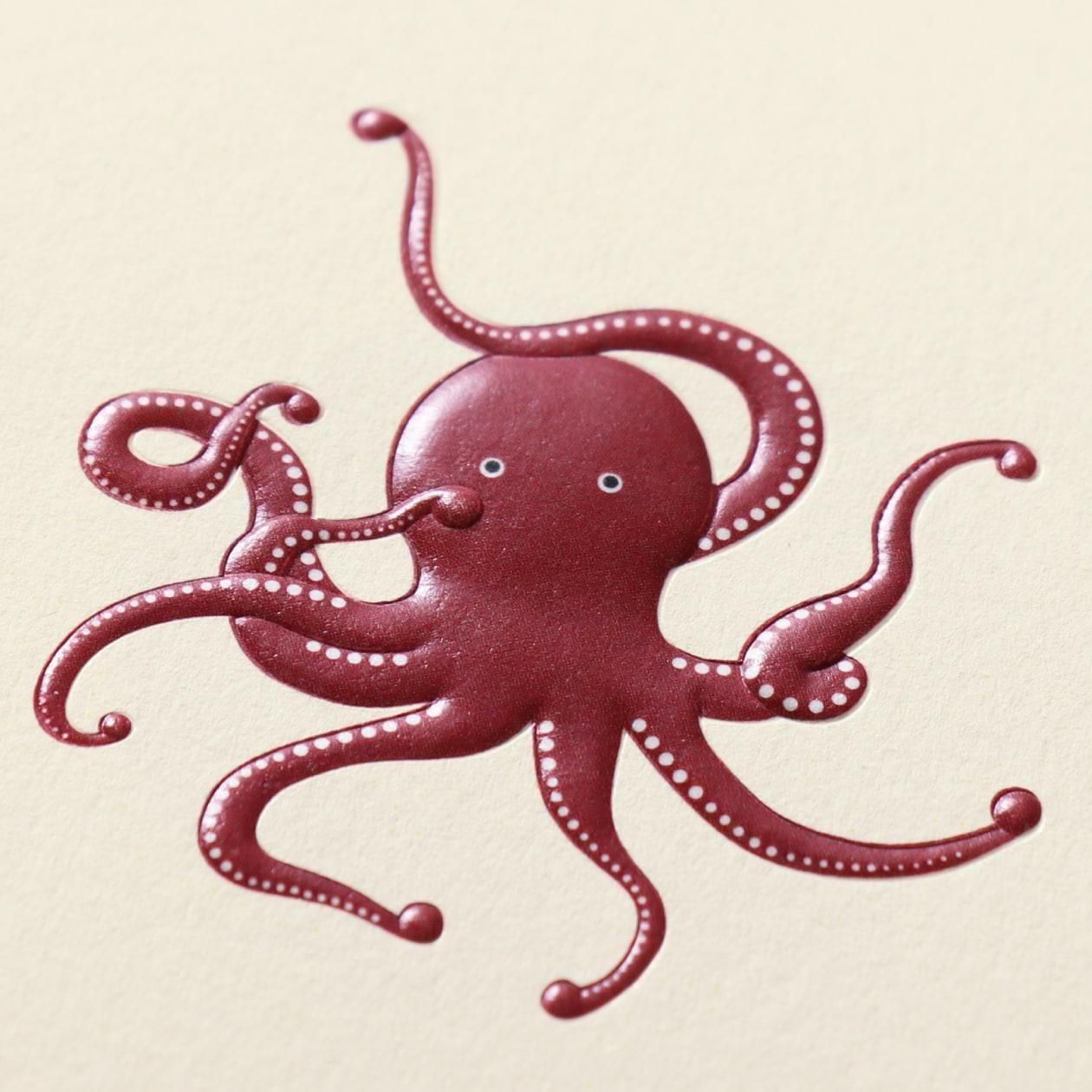 カードの上のタコはプリプリとして、今にも動き出しそうな躍動感です。なんとも言えない憎めない表情の「たこ八」は見ているだけで楽しくなってきます。