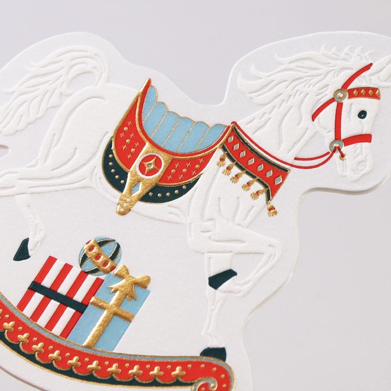 アンティーク調の愛らしい木馬を描いたアートカード。